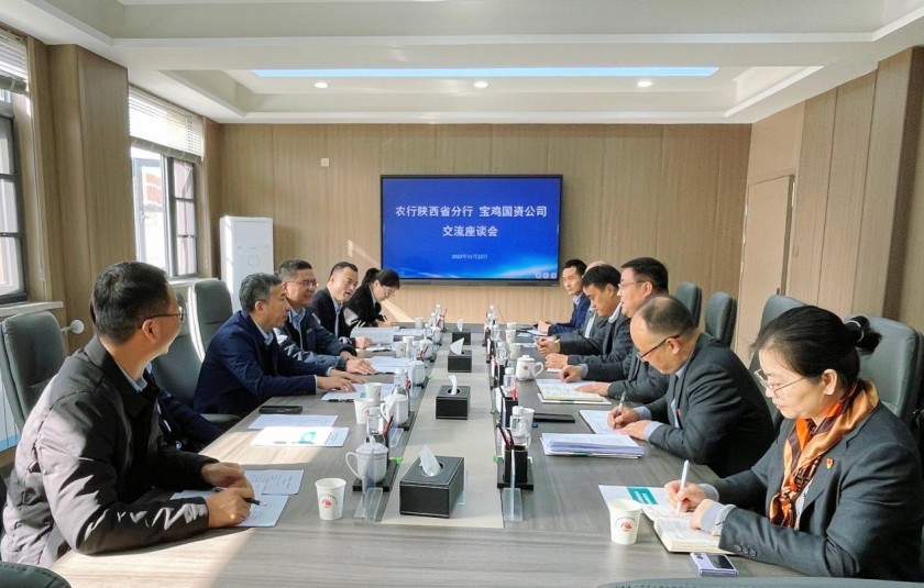 11月22日,中国农业银行陕西省分行副行长牛小龙一行到宝鸡市国有资产经营有限责任公司进行座谈交流,国资公司党委书记、董事长罗鹏伟,党委委员、副总经理魏军辉,党委委员、副总经理冯峰及各相关部门负责人参加座谈。