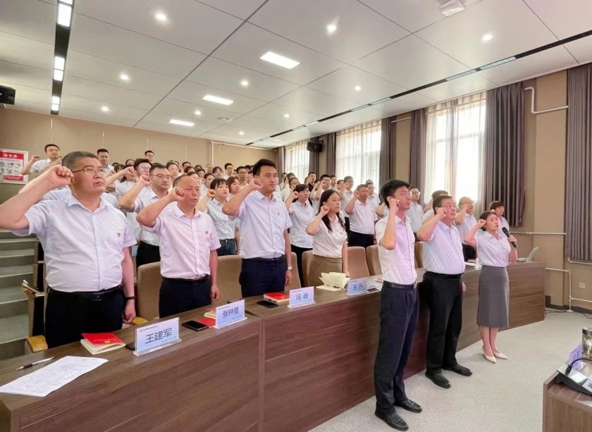 会上,全体参会人员奏唱国歌,全体党员重温入党誓词,公司党委委员、副总经理庞虎宣读了《关于表彰2022—2023年度优秀共产党员、优秀党务工作者和先进基层党组织的决定》,对先进基层党组织、优秀共产党员及优秀党务工作者进行了表彰。优秀共产党员和优秀党务工作者代表作了交流发言。