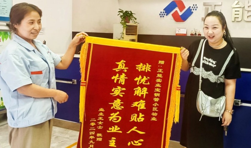 锦旗传情,赞誉励行。一面面锦旗不仅代表着荣誉,更是真情的凝聚、责任与担当的体现。把简单的事情做好就是不简单,把平凡的事情做好就是不平凡,因此,正能实业公司将始终秉持着“以人为本,服务至上”的宗旨,用心服务每一位业主,不断将正能量传递并感染更多的人,用实际行动回馈广大业主的厚爱与支持。全情投入、竭诚服务,为业主打造一个安心、舒心、放心的美好家园,让每一面锦旗都成为正能实业前行道路上的动力与鞭策。